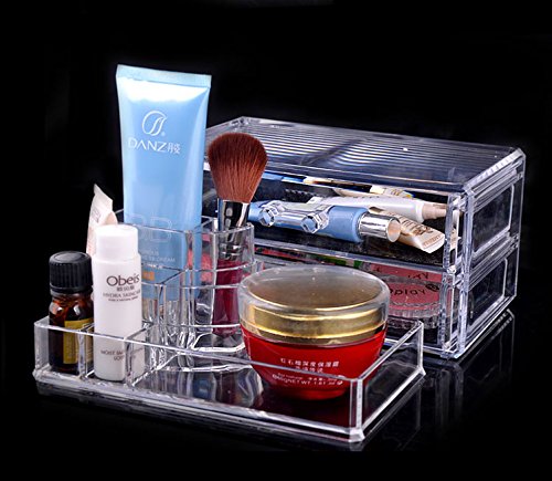 - Feature : Quite perfect for storing your makeup and cosmetics and jewellery / High transparent let you easy to found you wanted / Made of high quality acrylic, high transparent finish / Drawer part and top part can be separate place and drawers can be removed / Drawer Size: 7.5" (L) x 4.6"(W) x 3.5"(H)"; Top part Size: 7.5" (L) x 4.6"(W) x 2.6"(H)