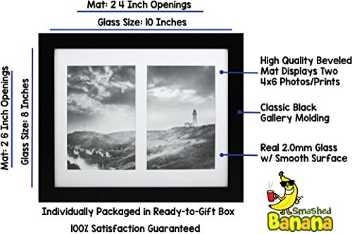 - TURN YOUR PHOTO INTO ART: This frame features two different photo sizes - 8x10 inches without the mat or two 4x6 inch opening with the white colored mat. The mat opening is 3.8x5.8 and photos can be attached with tape for perfect display. Turn any photograph, drawing, or portrait into a piece of art!