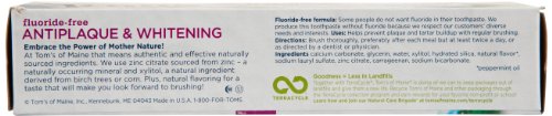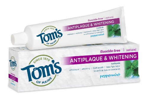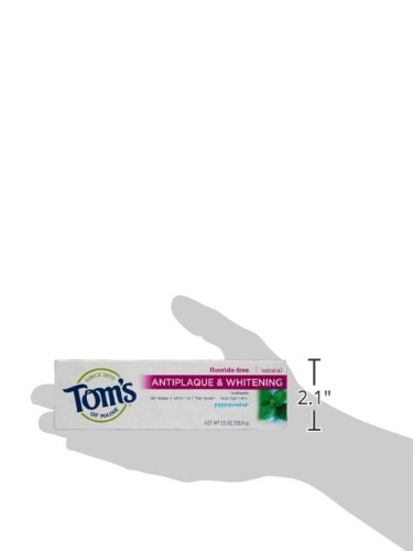 -. Binding : Health and Beauty -. Brand : Tom's of Maine -. EAN : 0077326830796 -. Feature : Natural, fluoride-free / Helps fight tartar / Antiplaque and whitening -. Label : Tom's of Maine -. Manufacturer : Tom's of Maine -. NumberOfItems : 1 -. PackageQuantity : 1 -. ProductGroup : Pantry -. ProductTypeName : HEALTH_PERSONAL_CARE -. Publisher : Tom's of Maine -. ReleaseDate : 2014-04-24 -. Studio : Tom's of Maine -. Title : Tom's of Maine Flouide Free Tarter Control Toothpaste, Peppermint, 5.5 oz -. UPC : 077326830796