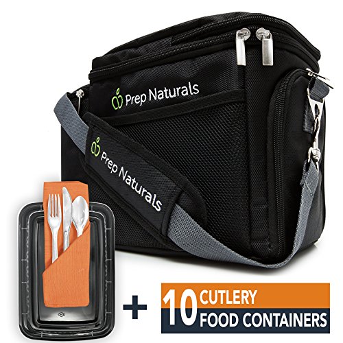 Take your meals with you This high-quality Meal Prep Small Cooler Bag Set by PrepNaturals helps you to save money and eat healthy wherever you are by allowing you to bring you home cooked food wherever you are. With its compact design, high storage capabilities and easy-to-use utensils, you are now able to eat on the go - no matter where you are. Contents The Cooler Bag Set offers you the best value for your money compared to other products currently on the market and contains: 1 x Cooler bag with strap 10x Cutlery set with fork, knife, spoon and napkin 10x One-compartment food container All items are approved by the FDA and the LFGB and are of course BPA free. The set is easy to use and clean, freezer safe and reusable. Please do not microwave cutlery and napkin. Stay organized The PrepNaturals cooler box offers multiple inner compartments that keep your food organized. The side pockets made from mesh material is perfect for storing bottle or other utensils. Bring food for the whole family by using the stackable containers included in the set. FAQ: Is the cooler bag machine-washable? - Yes. What material is the Zipper made from? Is it prone to rust? - The zip is made from zinc alloy. It does not rust at all. Has the small bag the storage capabilities for 3-4 meals? - Yes. What are the dimensions of the cooler bag? - The cooler measures 13"x7"x9". What is the size of trays? - The containers can hold up to 28oz and measure 10"x6"x3". Are the containers microwave-safe? - Yes, the containers are microwaveable, the cutlery, however, is not. Does the cooler maintain its shape when empty? - Yes, it does. What size bottle can I fit into the side pocket? - The side pocket can fit bottles up to 24oz. 0 |