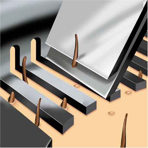 Long whiskers with a comb-shaped slit, precisely catching short beards and quirky whiskers with small holes.