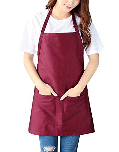 Adjustable Bib Apron with 2 Pockets Cotton Polyester for Women Men Kitchen Cooking Painting Gardening Wine Red