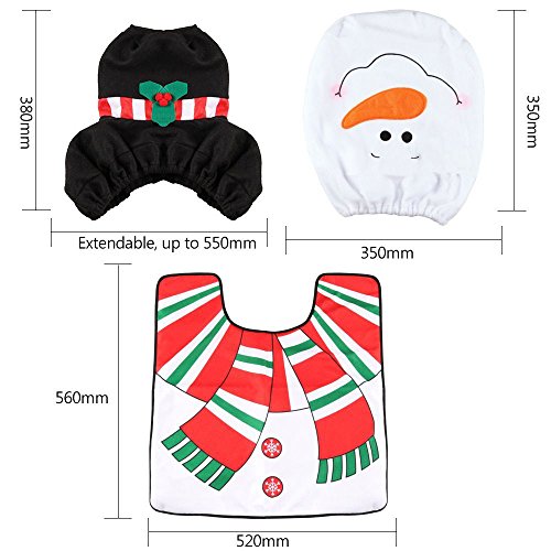 3 Pcs Christmas Festival Decorations Snowman Santa Toilet Seat Cover, Toilet Paper Box Cover and Rug Xmas Bathroom Set Decor (C)