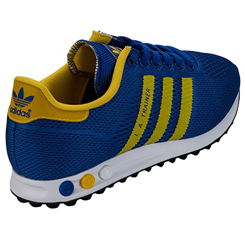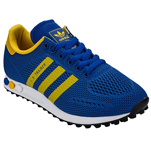 Studio : adidas Originals Publisher : adidas Originals Binding : Shoes Product Description Men's adidas Originals LA Trainer EM Trainers in Blue Yellow.- Tonal lace up closure.- Metal lace eyelets.- Breathable mesh one-piece upper.- Padded heel collar.- 3 stripe detail to sides.- Removable tricoloured heel plugs.- Compression-moulded EVA midsole for long-term, lightweight cushioning.- Rippled rubber outsole.- Textile and synthetic upper, Textile lining, Synthetic sole.- Ref: S76081 0