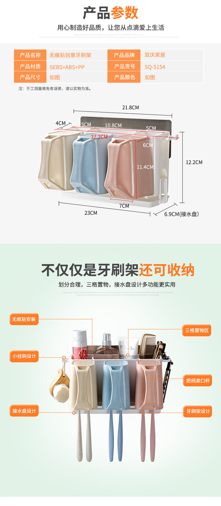 牙刷架创意卫生间吸壁式免打孔牙具牙膏架漱口杯套装挂牙刷置物架