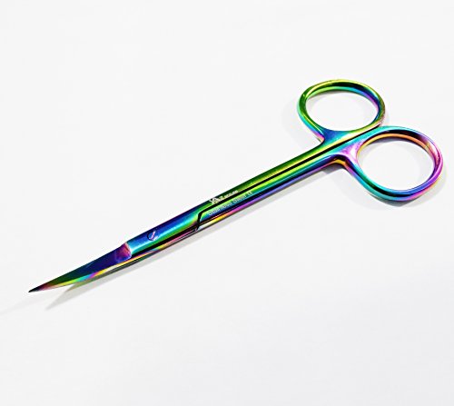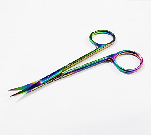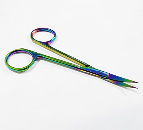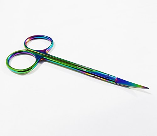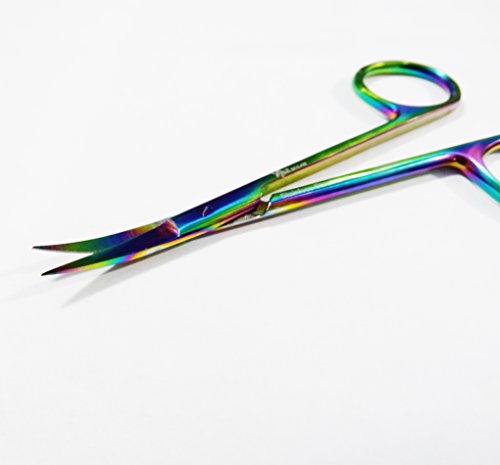 Multi Titanium Color Supercut Iris Micro Scissors 4.5" Curved with one Serrated Blade Stainless Steel