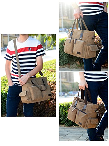 -. Feature : キャンパス地2WAYバッグです。通勤、通学、旅行など場所を選ばず幅広くご使用頂けます。 / 【仕様】外側:ファスナーポケット×3 サイドポケット(マジックテープ付き)×2 メインファスナー×1 内側:ファスナーポケット×1 オープンポケット(マジックテープ付き)×1 / ●色:ブラック・カーキ・ブラウン▼サイズ:横36cm×マチ16cm×高さ26cm×手提げ高16cm●重量:500g●素材:帆布 キャンパス生地