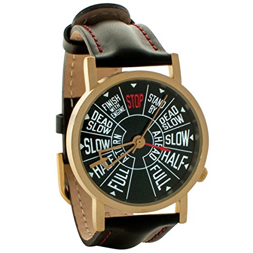 -. Feature : Full speed ahead. This watch displays a beautiful reproduction of an Engine Order Telegraph. The E. O. T. is used by the pilot on the bridge to order the engineers to power the ship. Great for any nautical enthusiast. Japanese quartz movement. / FEATURES - A 33mm diameter face, vegan immitation leather band, and accurate Japanese quartz movement. The watch is water resistant (not water proof), and truly a delight. Battery included. / COMES IN TIN GIFT BOX - Our watches make a great present for the intellectual or philosophical person in your life who just wants to keep accurate time. They come boxed in a beautiful tin that doubles as a display case for when you're being futuristic and keeping time on your phone. / ONE YEAR WARRANTY - This attractive timepiece has a 1 year manufacturer warranty. If you purchase from The Unemployed Philosophers Guild, and experience any issues, please contact us and we'll send a replacement. / FROM THE UNEMPLOYED PHILOSOPHERS GUILD - Don't worry. We are employed, just not as philosophers. We're a small, Brooklyn based company specializing in gifts for the sophisticated gift giver. For whatever you need, we have presents of mind.