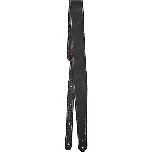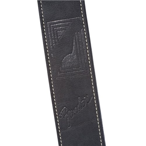 Fender 099-0681-006 Monogrammed Leather Strap - Black Leather with Tooled Fender Logos