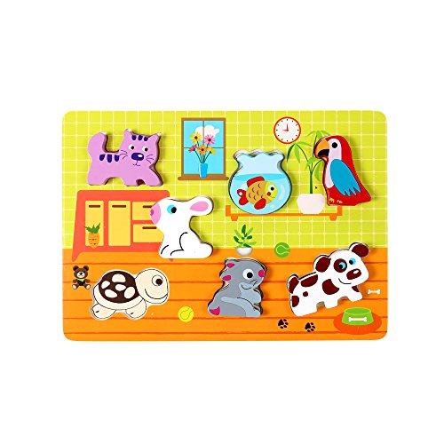-. Feature : Measures 12" x 8.5" x 1" in Dimensions / Total of 8 pieces: includes a cat, bunny, goldfish, parrot, dog, Mouse, turtle, and a puzzle board / Made from sustainable woods (MDF), safe paints, and meets the strictest testing standards / Eco-friendlily manufactured / Recommended for ages 12 months and up