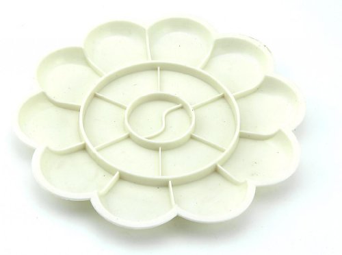-. Feature : Up tp 10 wells plastic palette. / Made of plastic, durable and easy to clear. / Excellent painting tools for artists. / Good for water based art. / White Color