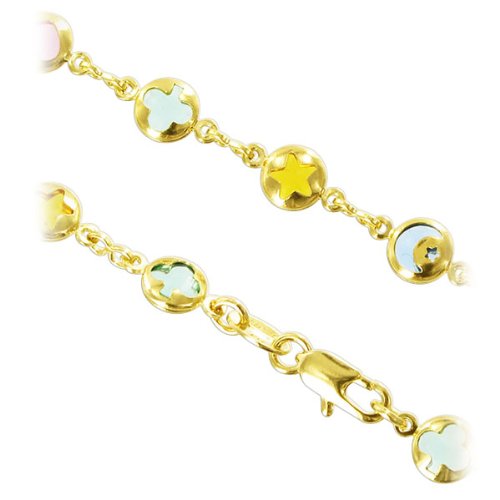 - Title : 18 KT Gold Layered Multicolor 6mm Stone Star Moon and Heart Design Clover Anklet with Lobster Clasp