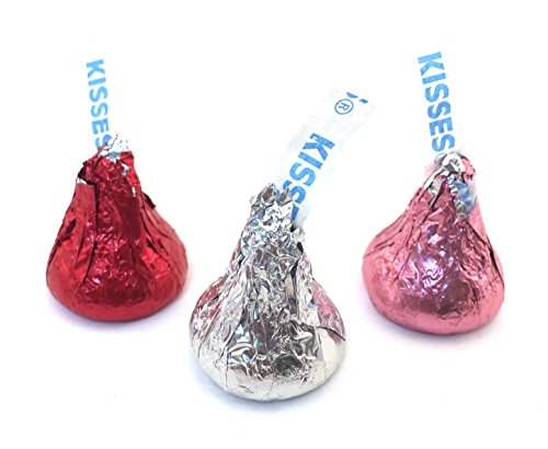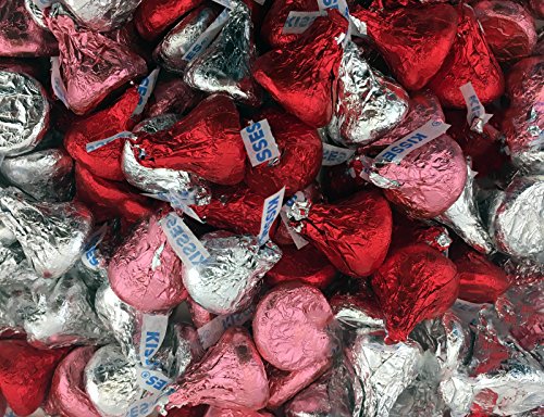 -. Feature : Hershey's Kisses Valentine's Milk Chocolate, 66.7 Pound Bag / Perfect for snacking, celebration décor, and party favors. / Individually wrapped in festive colored foils - red, pink and silver. / The perfect bite-size milk chocolate snack. A kosher and gluten-free candy. / Includes 1 bag of Milk Chocolate Kisses - Net weight 66.7 oz.