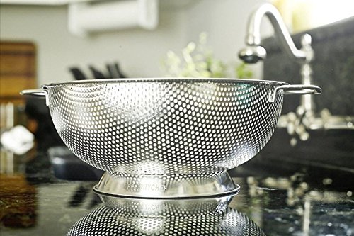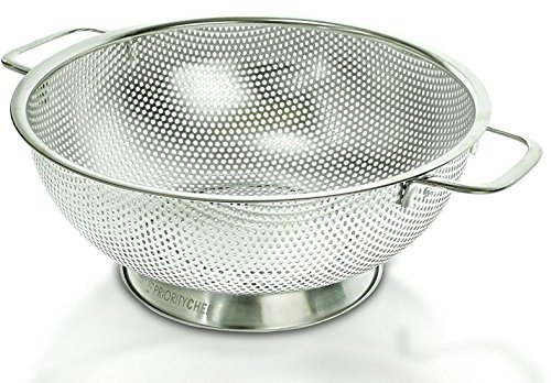 - The Priority Chef metal colander also features a sturdy ring base that will provide greater stability compared to strainers with just 3 legs that fall constantly into the sink hole!