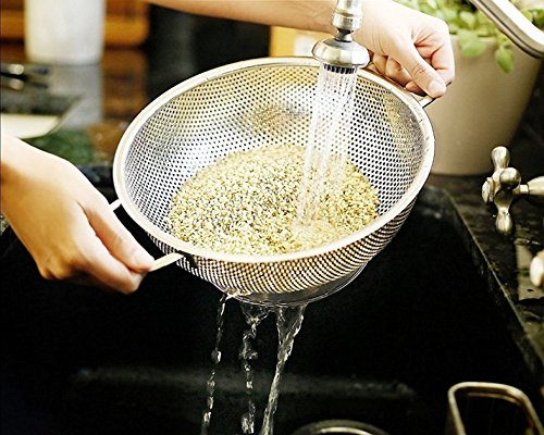 - Features special diameter holes that ensure a fast drainage without allowing for small pieces of food to pass through - Great for washing rice with minimal loss!