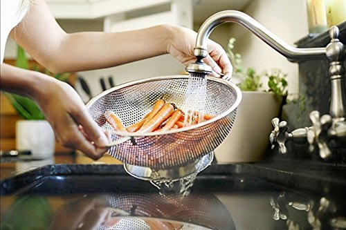 TOP OF THE LINE - We strive to provide only products that will exceed your expectations and will always satisfy you to the most. That is why our kitchen strainer is made of first class Stainless Steel that is rust free and will never affect the taste of your food!