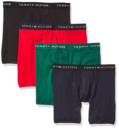 Tommy Hilfiger Men's 4-Pack Cotton Boxer Brief, Mahogany, Medium