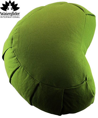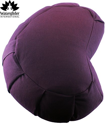(Waterglider International)/Yoga/Blocks/DIRECT FROM USA/Zafu Crescent: Meditation Pillow with USA Buckwheat Hull Fill, Certified Organic Cotton- 6 Colors