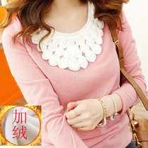 加绒加厚保暖高领长袖蕾丝打底衫女秋冬上衣2013小衫T恤大码网纱