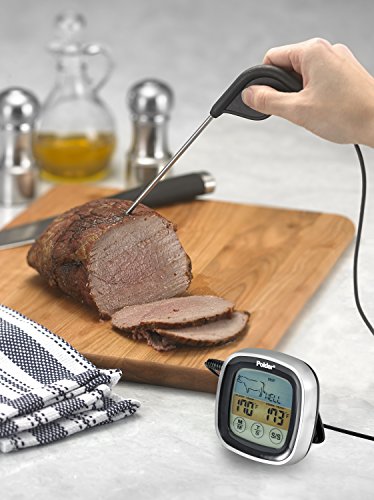 Amazon.com The Polder Accu-Touch Touch-Screen Thermometer and Timer is an easy-to-use and operate touch screen in-oven thermometer and timer in one. Ideal for a novice cook or expert in the kitchen, the touch screen pad makes it easy to cook to taste by simply selecting USDA safe temperature presets or customizing a programmable open setting to the desired temperature. The three-color, backlit display is easy to view. Choose between the table top or magnetic mount to place in just the right location. Whether cooking in the oven or on the grill, utilizing the in-oven ULTRA Probe’s long cord, rust-proof stainless steel, and high-heat, food grade plastic comfort grip handle, the meat is cooked perfectly and accurately every time. 0