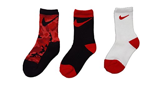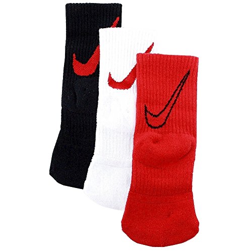 Nike Kids Crew Socks Performance 3 Pack Red, 9-13 Shoe/ 5-6 Sock (Toddler/Kids)