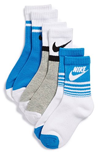 Nike Toddler Kids 3 Pairs Pack Crew Socks 13C-3Y, Grey/White/Blue