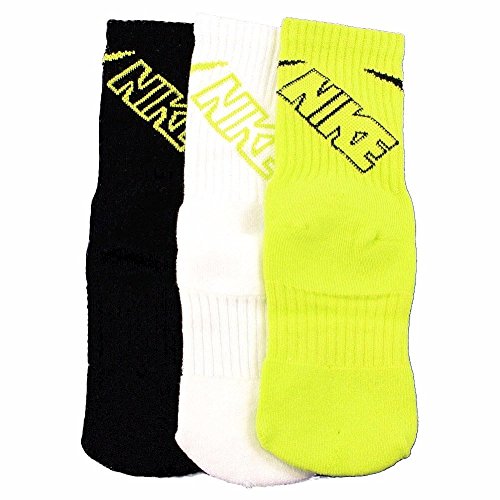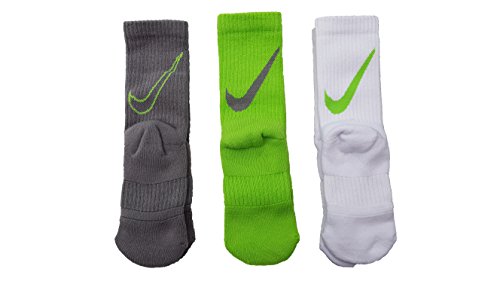 Nike Boy's Dri-FIT Cushioned Crew Athletic Socks 3 Pack (6-7 (Kids' Shoe Size 13C-3Y), Lime Green/white/Grey/Lime)