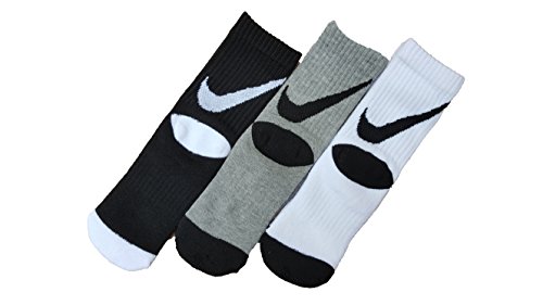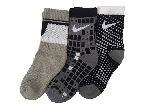 Nike Big Boys' Performance Crew Socks 3 Pack (X-Small (Youth shoe size 13C-3Y), White/Black/Grey)