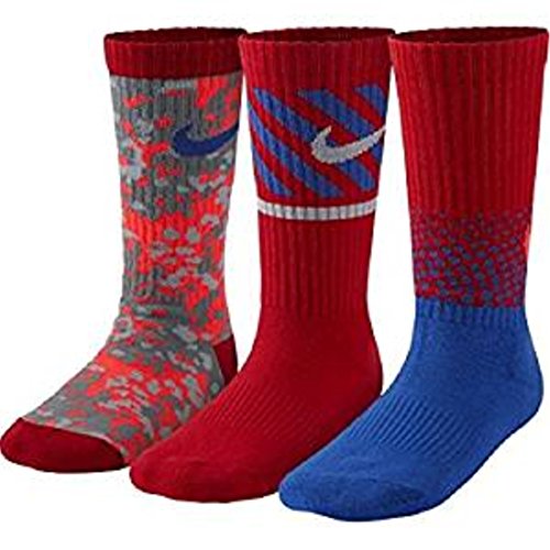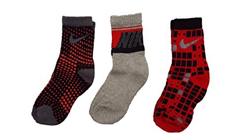 Nike Performance Crew Preschool Kids Socks (3 Pair) (Sock Size 6-7 (US Shoe Size 13C-3Y), Windows_Red (4046) / Dot_Red_Black/Grey_Nike)