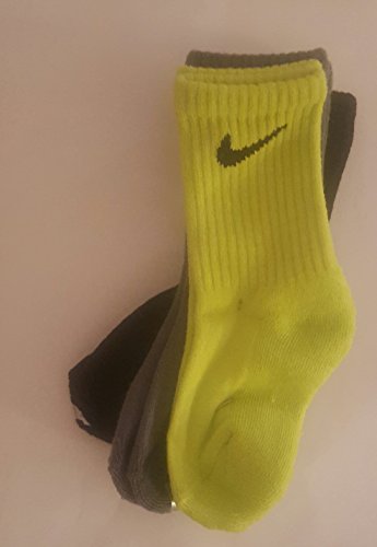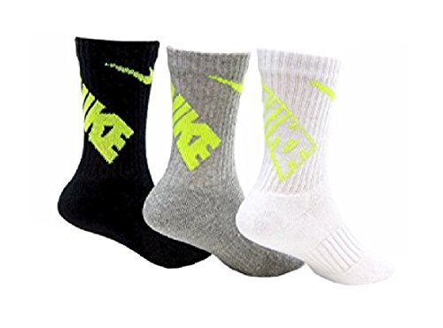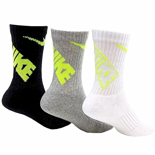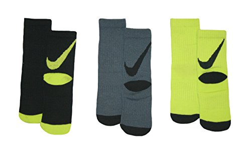 Nike Boys Big Swoosh Crew Socks 3 Pair, 13C-3Y (13C-3Y, Black/Grey/Neon)
