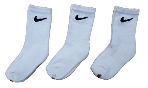 Nike Boys Crew Socks 3 Pair, Kids Shoe Size 9C-13C, Sock Size 5-6 (9C-13C (5-6), White)