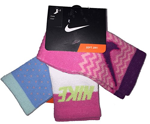 Nike Little Girl's 3-Pair Swoosh Logo Pink Multi Crew Socks Sz: 6-7 Fits 13C-3Y