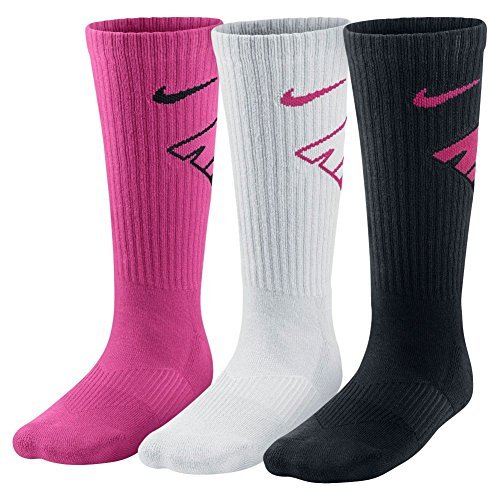 NIKE Girls' 3 Pack Multi Color Graphic Crew Socks