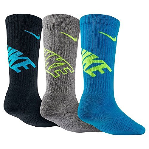 New Nike 3 Pack Boys' Graphic Cotton Cushioned Crew Socks Multi Color Youth Medium