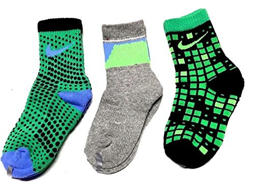 Nike Performance Crew Preschool Kids' Socks (3 Pair) (Sock Size 6-7 (US Shoe Size 13C-3Y), Action Green (4058) / White/Grey/Green)