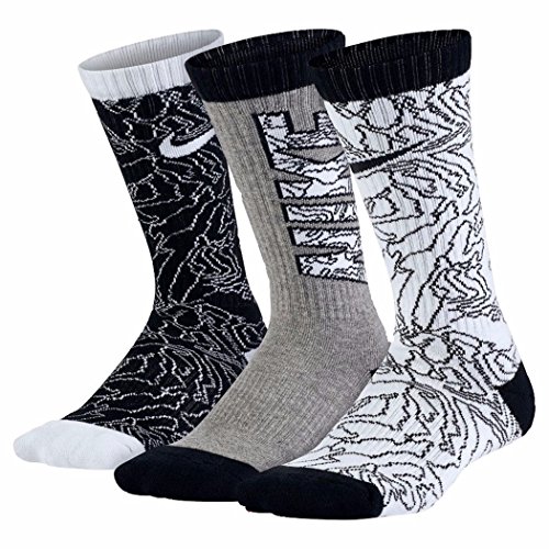 Nike Kids' Graphic Lightweight Crew Socks (3 Pair) (MD (5-7 Big Kid Shoe), Multicolor 1)