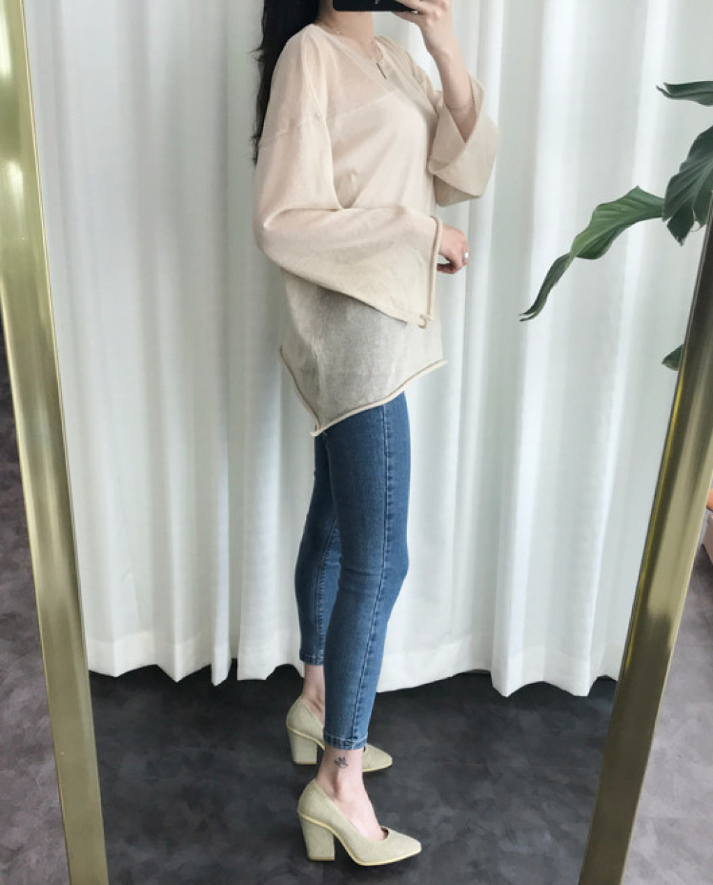 와이드한 소매와 루즈한 핏이 어우러져