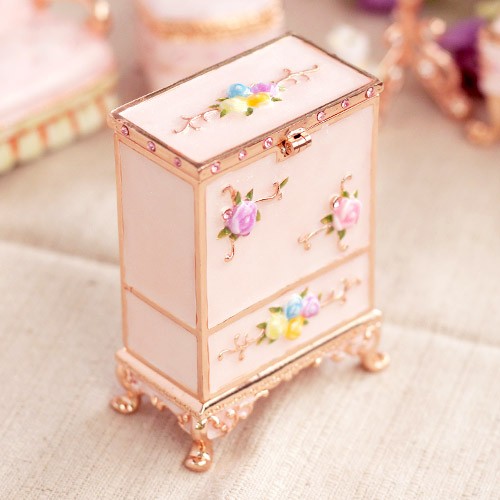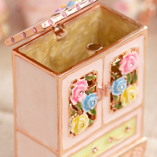 | ジュエリーボックスと言えば、指輪やピアス、ネックレスなどのアクセサリーを入れる引き出し型のケースを思い浮かべる方が多いかもしれません。 ピィアースのジュエリーボックスは、動物や花などをモチーフに作られ、合金製でずっしりとした重さがあります。また高品質のクリスタルガラスを贅沢に使用。まるでジュエリーボックスそのものが宝石のような、高級感溢れる仕上がりです。 小物入れとしても使えるように開閉口には磁石が取り付けてあり、アクセサリーなどなくしやすいアイテムの収納ができます。キラキラと美しく輝く宝石箱は、そのまま飾って楽しめるインテリア雑貨として多くの方に愛されています。 国内トップクラスのジュエリーボックスメーカーであるピィアースは、2004年ごろから本格的に宝石箱の製造を始め、現在のジュエリーボックスはなんと300種類以上。大規模展示会でもご好評いただいており、全国有名百貨店でも販売されています。 自社工場でひとつひとつ丁寧に手作りし、原型作成、研磨、加工、着色、小さなクリスタルガラスの取り付けなども全て手作業で行われるこだわりのハンドメイド品。完成後は厳しい検品の後、丁寧に梱包作業をしお客様にお届けしております。 ピィアース商品は、全国有名百貨店および全国有名宝石店チェーンにてお取り扱いいただいている高品質商品です。 ★自分へのご褒美に…コレクションして並べて飾ると、さらにかわいらしさUP! ★恋人へのプレゼント…中にアクセサリーを入れて、サプライズな贈り物として ★家族への感謝ギフト…お母さんや姉妹へ、日頃のありがとうの気持ちを込めて ★誕生日プレゼント…お友達の喜ぶ顔が見たいから、いつもと違うキラキラギフトを ★小さな女の子へ…まるでお姫様が使っているようなキラキラ宝石箱は女の子の憧れ! |