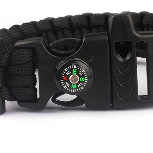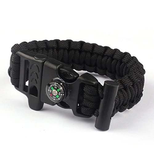 -. Title : SusenstoneRope Paracord Survival Bracelet Flint Fire Starter Compass Whistle