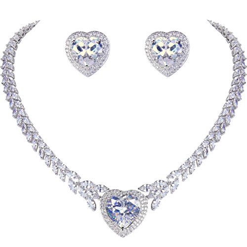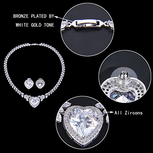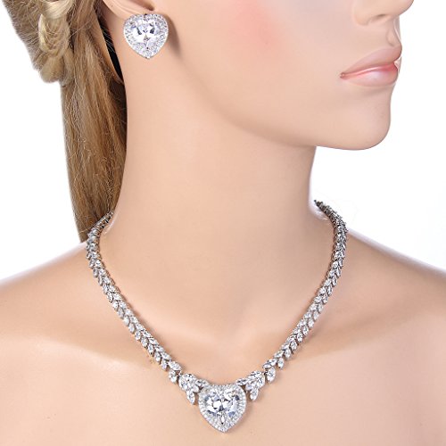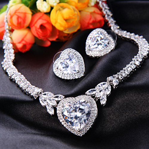 -. Title : EVER FAITH Silver-Tone CZ Elegant "Heart of the Ocean" Pendant Necklace Stud Earrings Set Clear