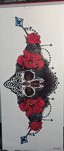 GGSELL Temporary tattoos for women's chest Peony flowers with skull head