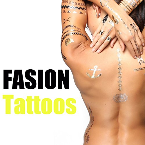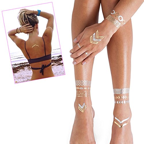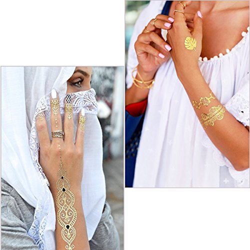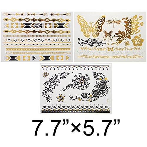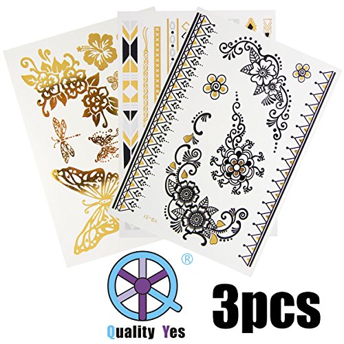 QY 3 Different All-in-one Sheets Gold Silver Black Bling Metallic Temporary Tattoos