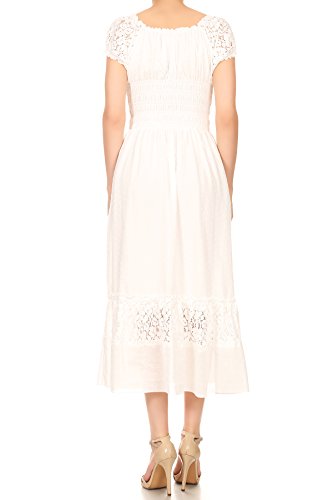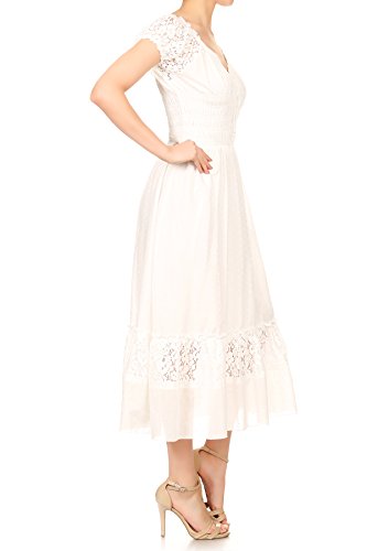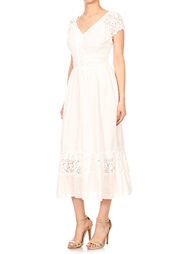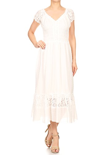 Slip into this dress and transport yourself back to a time of princesses and knight tournaments. The Anna-Kaci Renaissance Peasant Maiden Boho Inspired Cap Sleeve Lace Trim Dress blends a variety of textures and airy fabrics to create an exquisite gown perfect for recreating gypsy ensembles or a vintage inspired everyday look. Perfect for costumes, everyday wear, or even as a wedding dress!