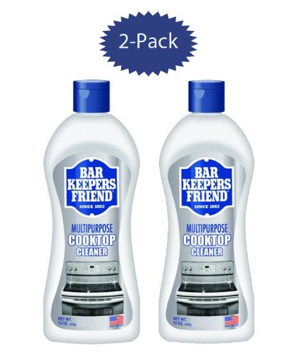 -. Brand : Bar Keepers Friend -. Color : Silver -. EAN : 0701142711709 -. Feature : Safe for all radiant and halogen glass, ceramic cooktops, and glass cookware / Gently removes food residue, stains and fingerprints without scratching / Specially formulated for smooth top stoves / Ammonia and silicone free; cleans and polishes / Food-safe formula -. Label : Bar Keepers Friend -. Manufacturer : Bar Keepers Friend -. Model : 22987 -. MPN : B00I50YI8C -. PackageQuantity : 1 -. PartNumber : B00I50YI8C -. ProductGroup : Home -. ProductTypeName : HOME_BED_AND_BATH -. Publisher : Bar Keepers Friend -. Size : Set of 2 -. Studio : Bar Keepers Friend -. Title : Bar Keepers Friend Cooktop Cleaner 13-Ounce Bottle - Set of 2 -. UPC : 701142711709
