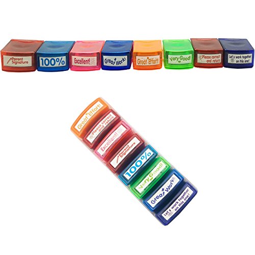 【Pre-inked】:Each Stamp set auto re-inks and makes over 30,000 impressions for long lasting use. Easily and quickly marks students papers to note, congratulate, encourage and recognize assignments,and also eliminates mess.