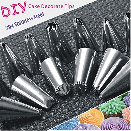 - Material: The cake decorating tips are made of 100% food grade stainless steel (304).Icing bag is made of food grade silicone.Eco-Friendly, Corrosion- Resistant and Durable, Easy to clean