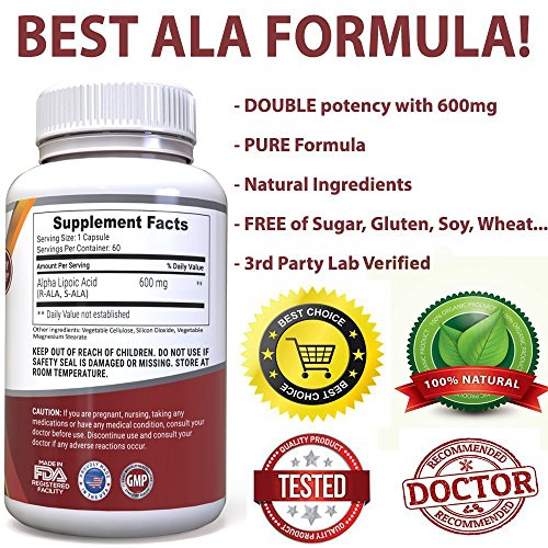 Alpha Lipoic Acid - Potent Formula - Our 600mg Alpha Lipoic Acid formula (with 50% R-Lipoic Acid & 50% S-ALA) very potent (1 per day is enough) - FREE of sugar, gluten, soy, yeast, wheat, milk, lactose, starch and sodium