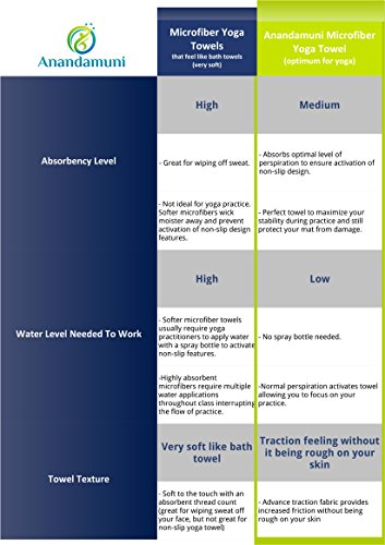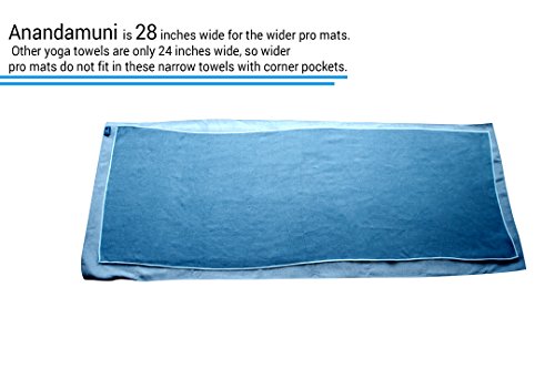 Serious Yoguis choice - Anandamuni Yoga Skidless Towel (28" by 72") is PERFECT FOR WIDER MATS with fit corners to avoid towel scrunching. Best for Bikram, Ashtanga, Power and Hot Yoga.