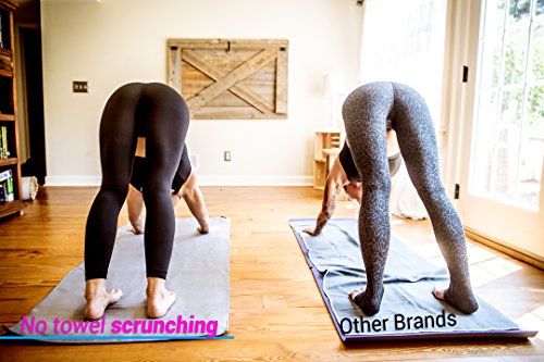 - FOCUS ON YOUR PRACTICE, NOT ON SLIPPING! Texture of this premium microfiber gives you a better grip with minimum sweat. No need to wet towel before class like a lot of other towels to activate gripping feature. Recommended that you put towel corners on back of mat and rest of towel folded just outside mat, since at the beginning your mat provides enough grip and once you start to sweat pull towel over mat to put on front corners (takes less than 10sec). Try it and go deeper in your poses!