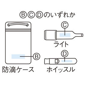 ●備考:セット内容/防水バッグ・アルミブランケット・防滴ケース・LEDライト・ホイッスル・レインポンチョ、ライト/LED1灯式、ボタン電池4個付